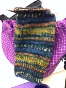 I’ve been bringing my socks to work on at lunchtime this week. My goal is to have two pairs to bring to my knitting lesson on Saturday. Or at least one of each. I’m hoping that if I can go over my gusseting technique with the teacher 2-4 times, I should be able to suss it out. More socks means more repetition, thus reducing the likelihood that I will forget the content of my lesson on the drive home.