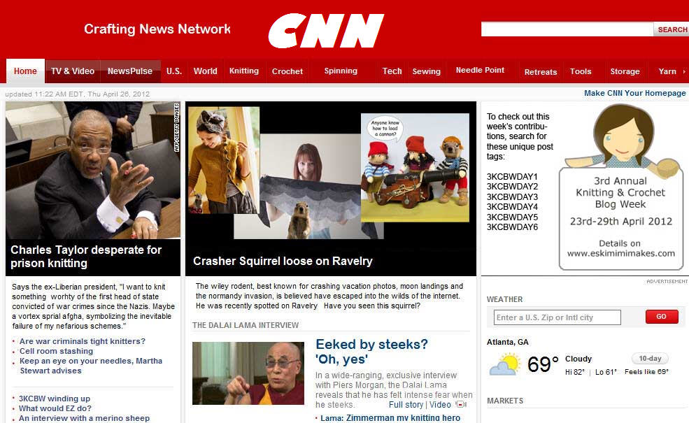 […] All She Wants to Do Is… created a knit/crochet version of The Onion website, call Crafting News Network. How hilarious! […]