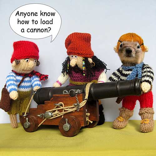 Hahahahahahahahahahaha! I needed to read this blog post tonight… Between the squirrel, pirates and are war criminals tight knitters! Awesome.