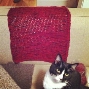 Sure, the knitting is relaxing; napping would be too, but that’s not the point. I am knitting to spite the dandelions. You haven’t licked me! I can go on with my life and my knitting. My battle injuries don’t even slow me down. Tomorrow I’ll come back even more determined than ever and I’ll repel your invasion. You’ll run crying back to my neighbor’s yard, where they seem to be running a dandelion hostel.