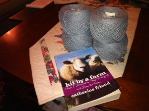 To accompany my knitting, I’ve picked up Hit By A Farm, a memoir by Catherine Friend, a local author. It recounts the trials experienced by two city girls who, at middle age, decided to take up sheep farming. I expected this book to be a feel-good romp, like a 21st century version of All Creatures Great and Small. Hoo boy, was I wrong.