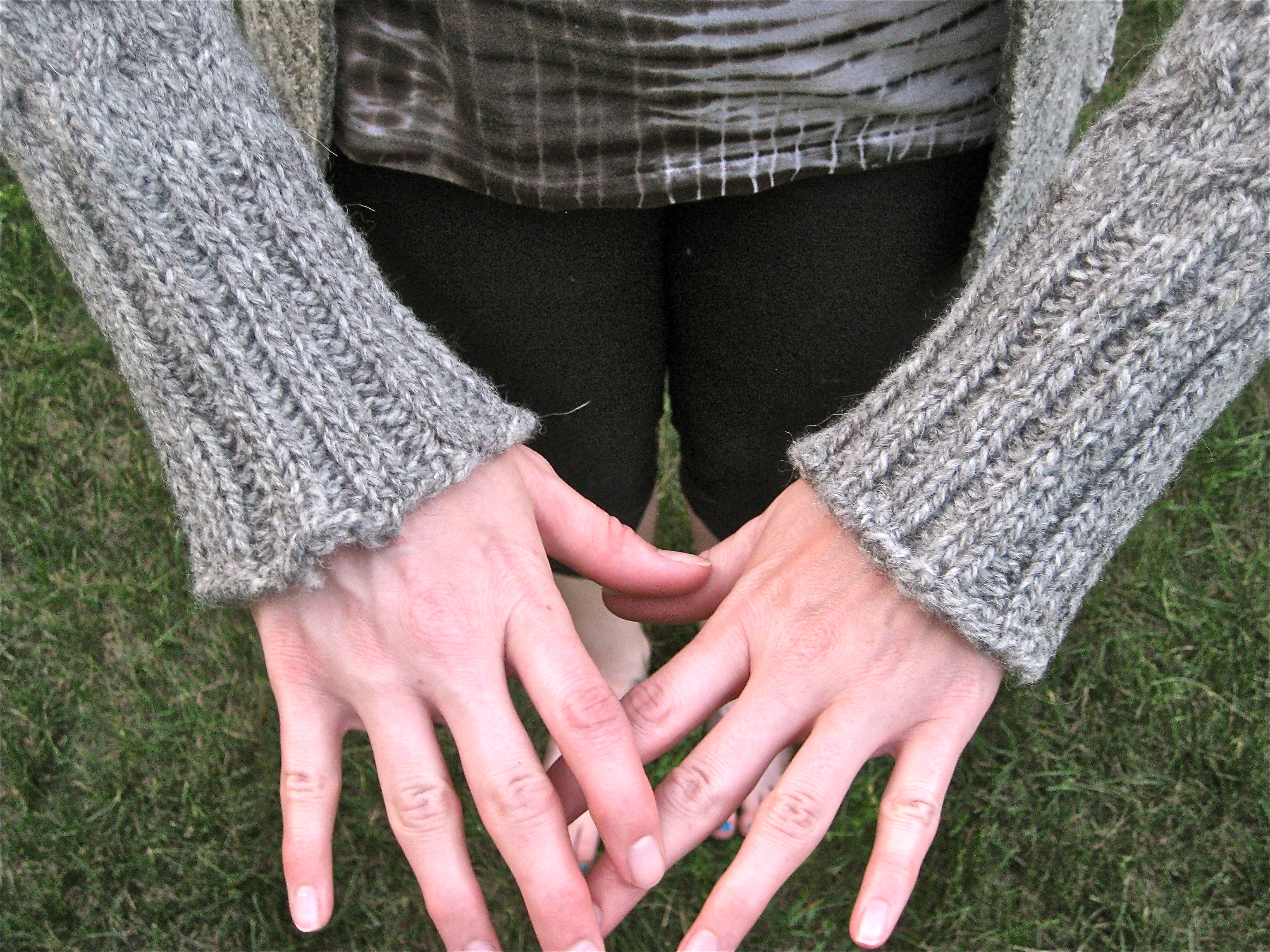 • Sleeves are not supposed to cut off your circulation: Objects knitted in the round don’t always come out at the same gauge as pieces of the garment that are knitted flat. As previously documented in my Rocky Coast saga, I had to re-knit these sleeves four times, experimenting with adding stitches and using larger needles until I found a combination that worked. I don’t think my arms are especially chunky, but no way were they fitting into the sleeves the pattern called for.