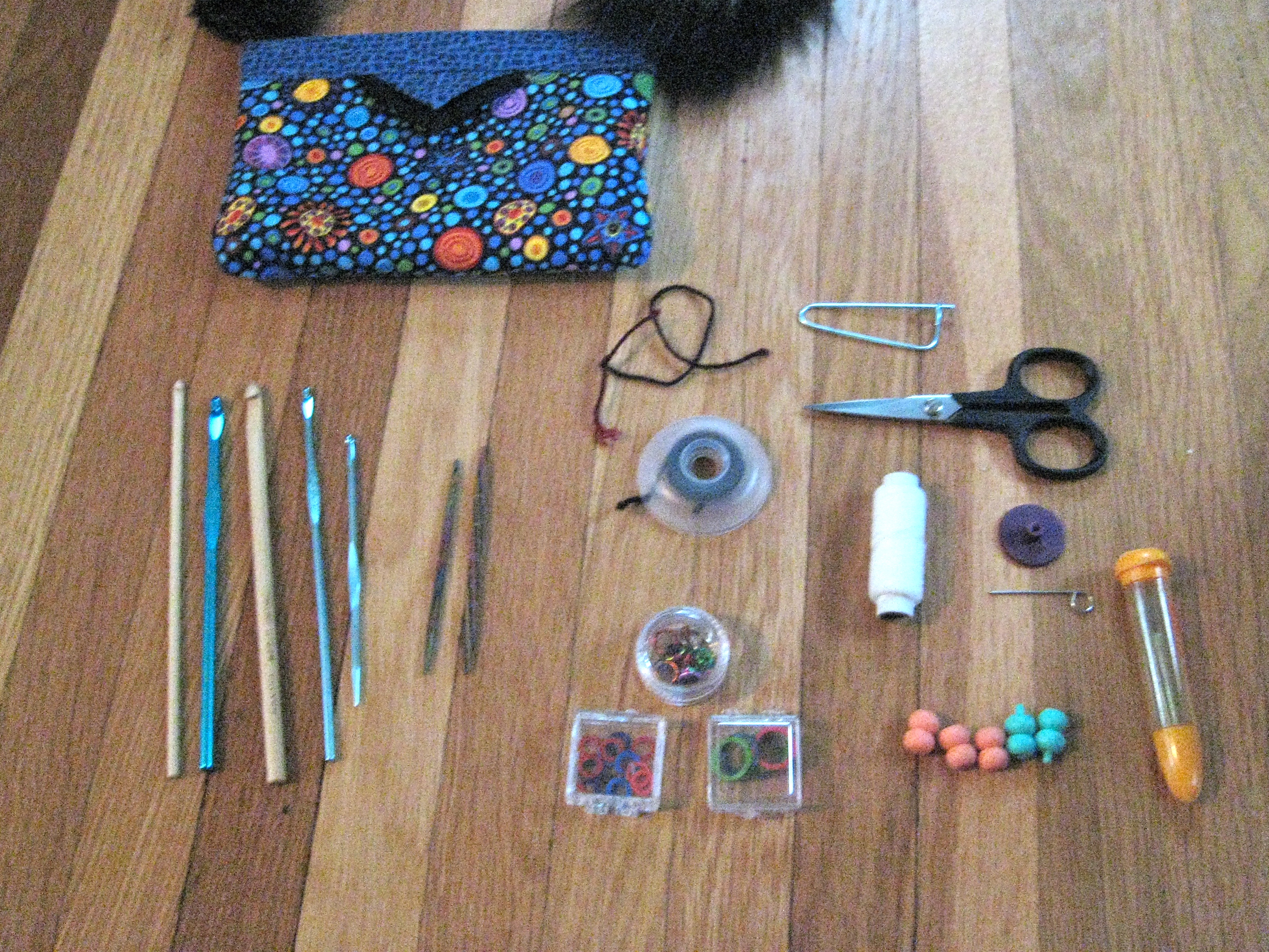 I love the crochet hooks keeping company to the two useful ones, haha