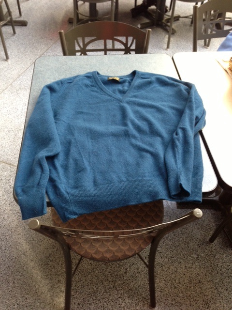 I picked up the following sweater at a local thrift store and gave it a good hand washing to remove any lingering second-hand skeevies. It’s 100% cashmere in a perfectly acceptable color. And most importantly, it had friendly construction and good seams. You want to avoid serged seems like the plague. You’ll end up with lots of little strips of yarn. And who wants to spit splice all of those little pieces? Not me.  Not even cashmere is worth that kind of aggravation.