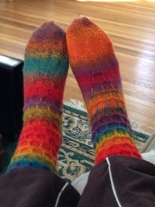 Knit from Crazy Zauerball. Pattern is V Junkie by Alice Wu from her book, Socktopus.