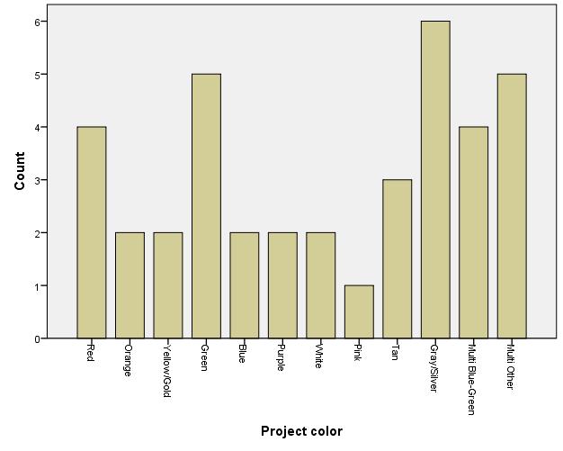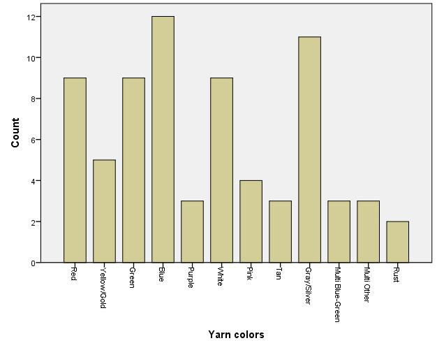 yarnAnd here’s a bar graph showing the distribution of colors in my projects on Ravelry: