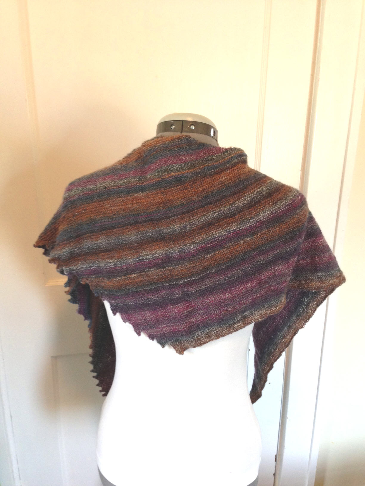 One other accomplishment I’m proud of: I knitted this whole shawl (well, most of it) using a new technique for holding the yarn in my right hand. By the time I was done with this shawl, I had started to knit with that technique naturally. It felt right and comfortable. Sadly, this comfort disappeared entirely when I picked up my next, more complicated project. I reverted to my old ways without realizing it. Gack!