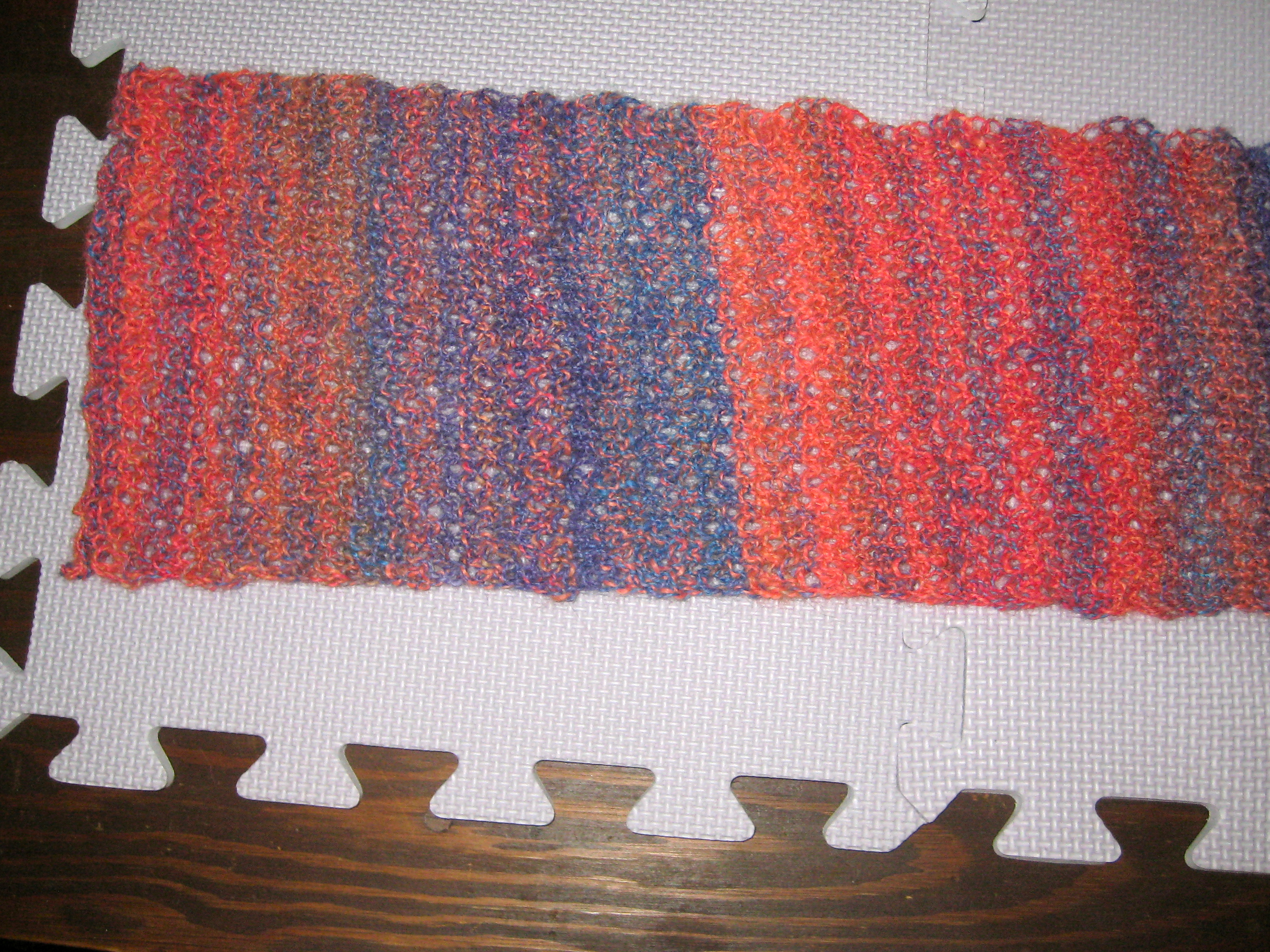 I searched on Ravelry for a simple pattern that could  showcase the stripes while using as much of my little hank as possible. I settled on the Honeycomb Mesh Scarf from Churchmouse Yarns. A free pattern.