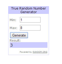 I gave each entrant a number, 1-8. Then I drew a number using a random number generator.