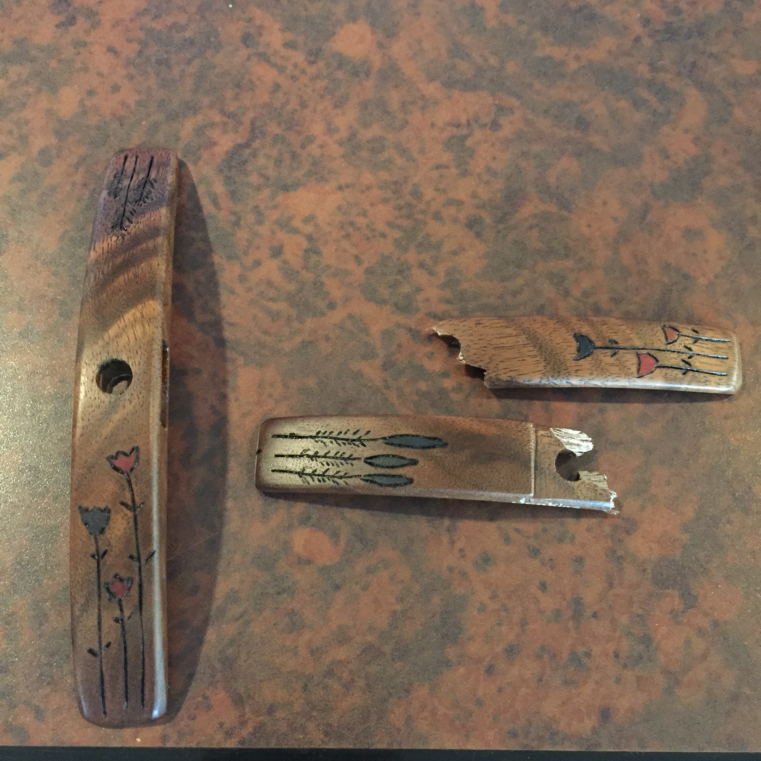 This happened last night while I was test driving my Turkish spindle. The single I was spinning broke and the spindle dropped. I caught it reflexively (but not violently) between my calves. Snap went the cross bar.