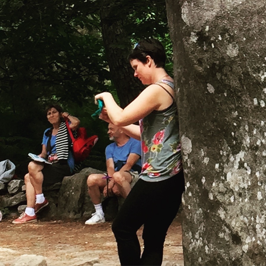 My husband and I spent the last two weeks in France. I brought a knitting project and a spinning project along to keep me entertained, but it was the spinning that got the most attention. I brought a sturdy little Akerworks spindle in the smallest size they offer. It was easy to tuck into my purse or backpack for a day of sight seeing. Easy to take apart and put together again.